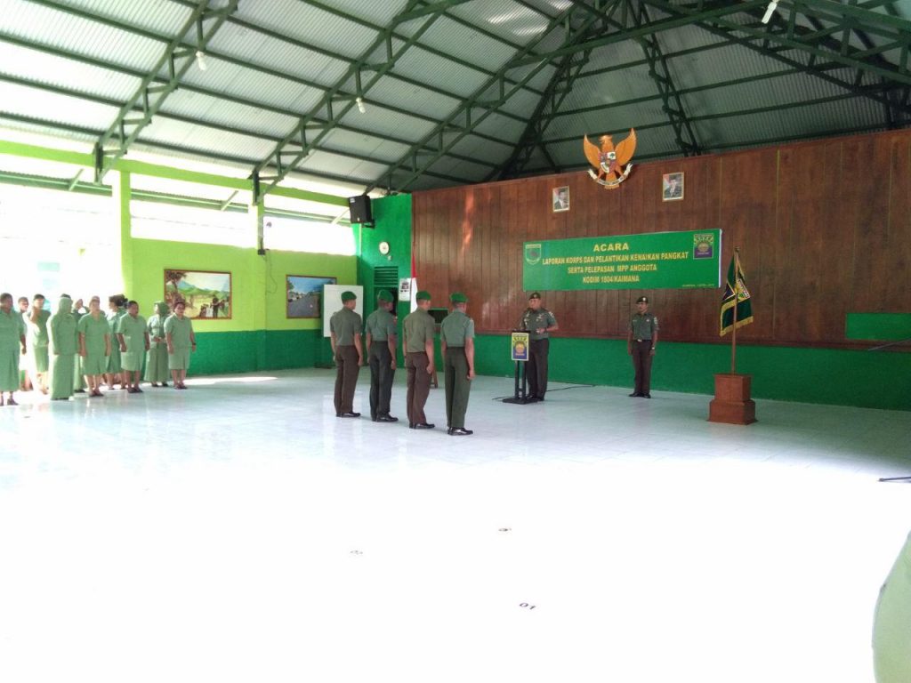 Pada kesempatan tersebut Dandim 1804/Kaimana menyampaikan ucapan selamat kepada anggota yang naik pangkat baik Perwira,Bintara dan Tamtama. Kenaikan pangkat adalah sebuah prestasi tersendiri bagi seluruh anggota, bahkan mengandung makna yang penting bagi setiap anggota dan kebanggaan keluarganya.