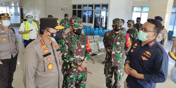 MANOKWARI, PapuaStar.com – Pangdam XVIII/Kasuari, Mayjen TNI I Nyoman Cantiasa, Kapolda Papua Barat Irjen Pol Tornagogo Sihombing bersama Gubernur Provinsi Papua Barat, Dominggus Mandacan, melakukan peninjauan penerapan protokol kesehatan (Prokes) di Bandara Rendani dan Pelabuhan Manokwari, Kabupaten Manokwari, Provinsi Papua Barat, Selasa (29/06/2021).