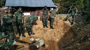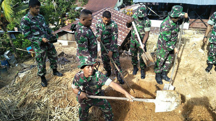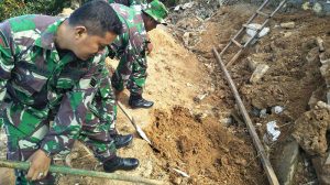 Anggota Koramil Sorong Barat Gotong Royong Atasi Kesulitan Rakyat