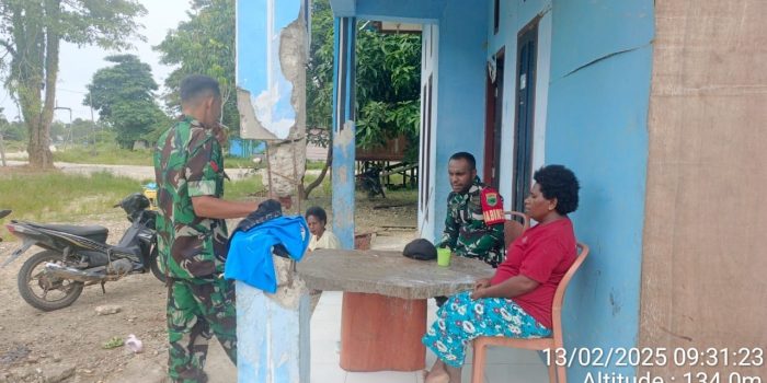 pada hari Kamis tanggal 13 Februari 2025 bertempat di rumah Bapak Yunus Boho Warga kampung Barma distrik Meyado anggota Satgaster Kodim 1806/TB melaksanakan kegiatan Komsos bersama warga