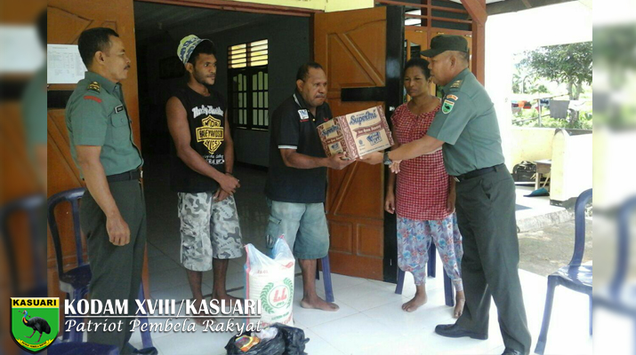Pada kesempatan itu pula Babinsa juga memberikan Bahan sembako berupa Beras, Supermi, Gula, Kopi dan Teh serta bantuan dari Dandim 1704/Sorong Letkol Inf Daniel E.S. Lalawi.