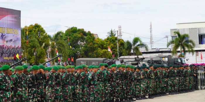 Sorong. kasuari18-tniad.mil.id – Papua Barat Daya, Pangdam XVIII/Kasuari Mayjen TNI Ilyas Alamasyah Harahap, S.E., M.Tr. (Han) CGCAE, memimpin Apel Gelar Pasukan Dalam Rangka Kesiapan TNI Pada Pengamanan Pemilu Tahun 2024, bertempat di Alun-alun Aimas Jalan Sorong – Aimas, Malawili, Kecamatan Aimas, Kabupaten Sorong, Papua Barat Daya, Kamis (01/02/2024).