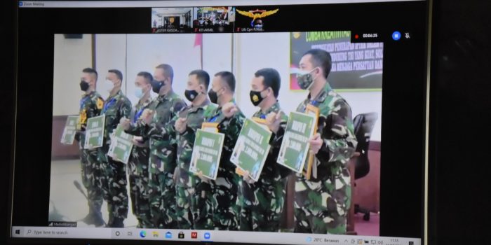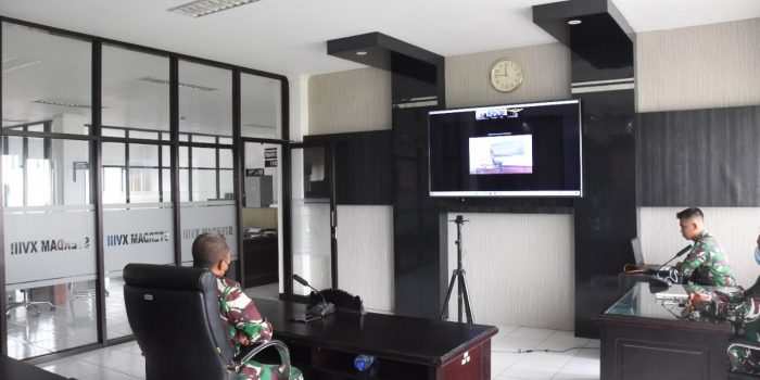 Manokwari. kodam18kasuari.tni-ad.mil.id – Kodam XVIII/Kasuari diwakili Aster Kasdam XVIII/Kasuari, Kolonel Inf Hengki Yuda Setiawan mengikuti Video Conference (Vicon) yang digelar oleh Dinas Penelitian dan Pengembangan Angkatan Darat (Dislitbangad), tentang Penutupan Lomba Kreativitas Prajurit/PNS Dilingkungan TNI AD 2021 dari ruang rapat Sterdam XVIII/Kasuari, Makodam, Trikora, Arfai 1, Manokwari, Papua Barat, Jumat (23/7/2021).