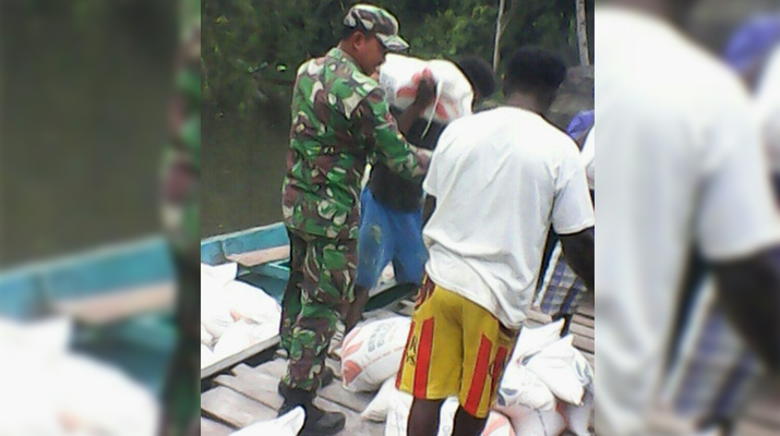Sorong – Babinsa Koramil 1704-03/Saonek Kopda Fajar mengawasi pendistribusian Raskin agar pendistribusian mencapai sasaran berjalan lancar dan tidak ada penyelewengan oleh oknum tertentu, bertempat di Distrik Mayabilit Kabupaten Raja Ampat, Papua Barat, Sabtu (16/12/17).