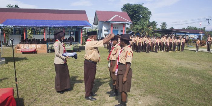 Sorong. Papua Barat Daya – Danramil 1802-03/Salawati Kapten Inf Semba diwakili oleh Babinsa Koramil 1802-03/Salawati Sertu Amin Tohari menghadiri upacara gerakan Pramuka dalam rangka Hari Bapak Pramuka Sedunia Baden Powell Ke-168 Tahun yang dilaksanakan di lapangan SD Inpres 11 Kabupaten Sorong. Distrik Salawati Kabupaten Sorong. Provinsi Papua Barat Daya. Sabtu (22/02/2024)