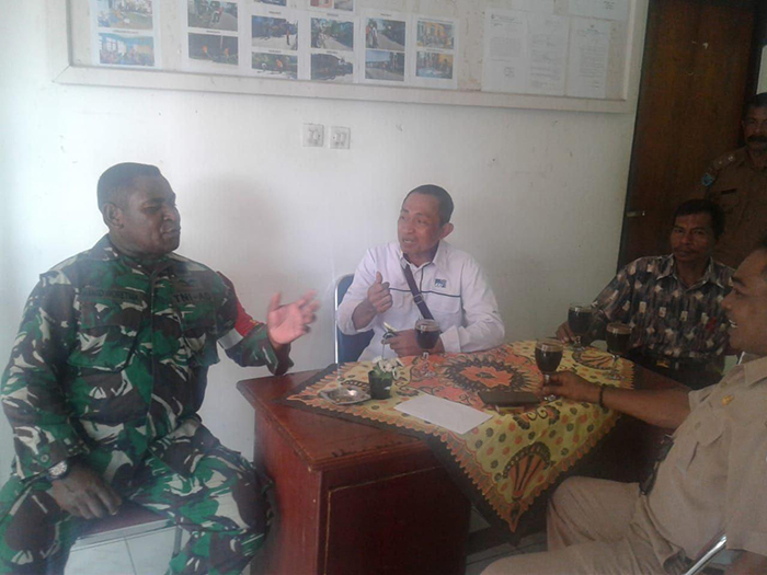 Fakfak – Agar menjaga hubungan yang baik antara Babinsa dengan aparat pemerintah, Babinsa Kelurahan Fakfak tengah Koramil 1803-01/Kota Sertu Hamid Woretma secara rutin mendatangi dan berkomunikasi dengan masyarakat. Salah satunya dengan mendatangi Kantor Kelurahan Fakfak tengah dengan Kadistrik (Bapak Munawir Rengen. S, Sos), Senin(14/01/2019).