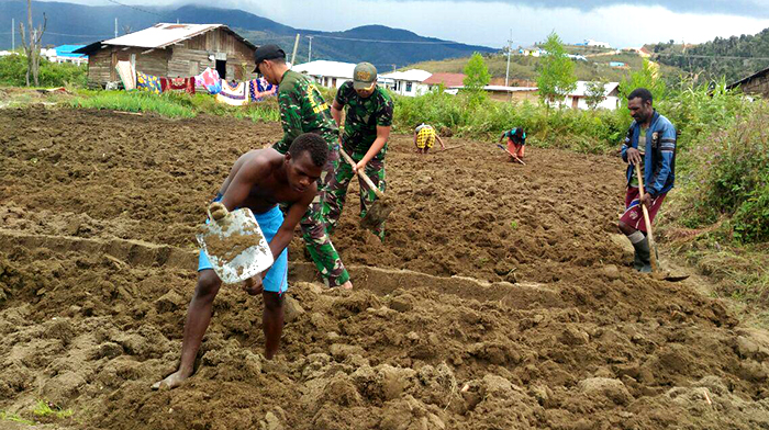 Manokwari – Dalam upaya meningkatkan motivasi dan semangat warga masyarakat untuk bercocok tanam serta meningkatkan hasil produksi pertanian mereka, segala usaha telah ditempuh oleh satuan kewilayahan, Seperti halnya yang dilakukan Babinsa Koramil 1703-09/Anggi Sertu Irwanto dan Kopda Tri Wahyu Adi bersama masyarakat melaksanakan bercocok tanam di Kampung Imbei Distyik Anggi Kab. Pegunungan Arfak Prov. Papua Barat, Rabu (24/05/2017).