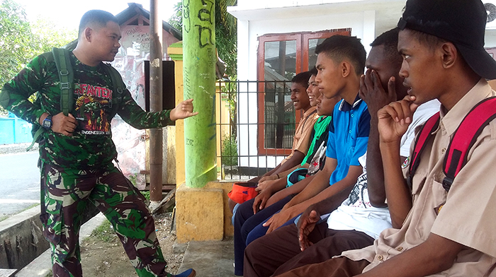 Kaimana – Sebagai aparat territorial yang peduli dengan generasi muda bangsa, Koramil 1713-03/Teluk Arguni selalu senantiasa memberikan pengarahan dan bimbingan kepada siswa sekolah. Hal tersebut dilakukan karena Koramil menyadari bahwa siswa sekolah merupakan penerus bangsa, mempedomani hal tersebut, Babinsa Koramil 1713-03/Teluk Arguni melaksanakan bimbingan dan pengarahan kepada siswa SMPN Arguni Bawah, Senin (13/11/2017).