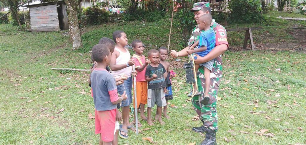 Sementara Markus (9 Tahun) warga dari Kampung Koma-Koma yang bercita – cita ingin menjadi tentara mengatakan, kami senang bisa bermain bersama dengan pak TNI, saya dan teman-teman yang lain bisa lebih dekat dan akrab dengan TNI, selain kami bisa bermain bersama kami juga bisa tau tentang TNI.