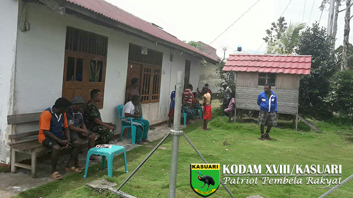 Sorong – Babinsa Koramil 1704-05/Ayamaru Serda Abdul Gafur Payapo melaksanakan mediasi dalam menyelesaikan masalah antar warga yang terjadi di Kampung Jitmau Distrik Aitinyo Raya Kabupaten Maybrat, Minggu (09/04/2017).