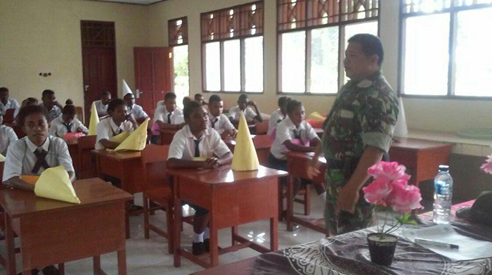 Babinsa Berikan Materi Wawasan Kebangsaan Kepada Siswa-Siswi SMAN 8 Makbon