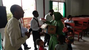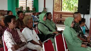 Sorong – Berbagi kasih, begitulah yang dilakukan Babinsa Koramil 1704-08/Teminabuan Serma Soleman bersama anggota Persit Ranting 9 Koramil 1704-08/Teminabuan melaksanakan anjangsana serta pemberian bingkisan sebagai tali kasih ke jamaat Gereja Teberias Seyolo Teminabuan Kab. Sorong Selatan, Senin (22/10/2018).