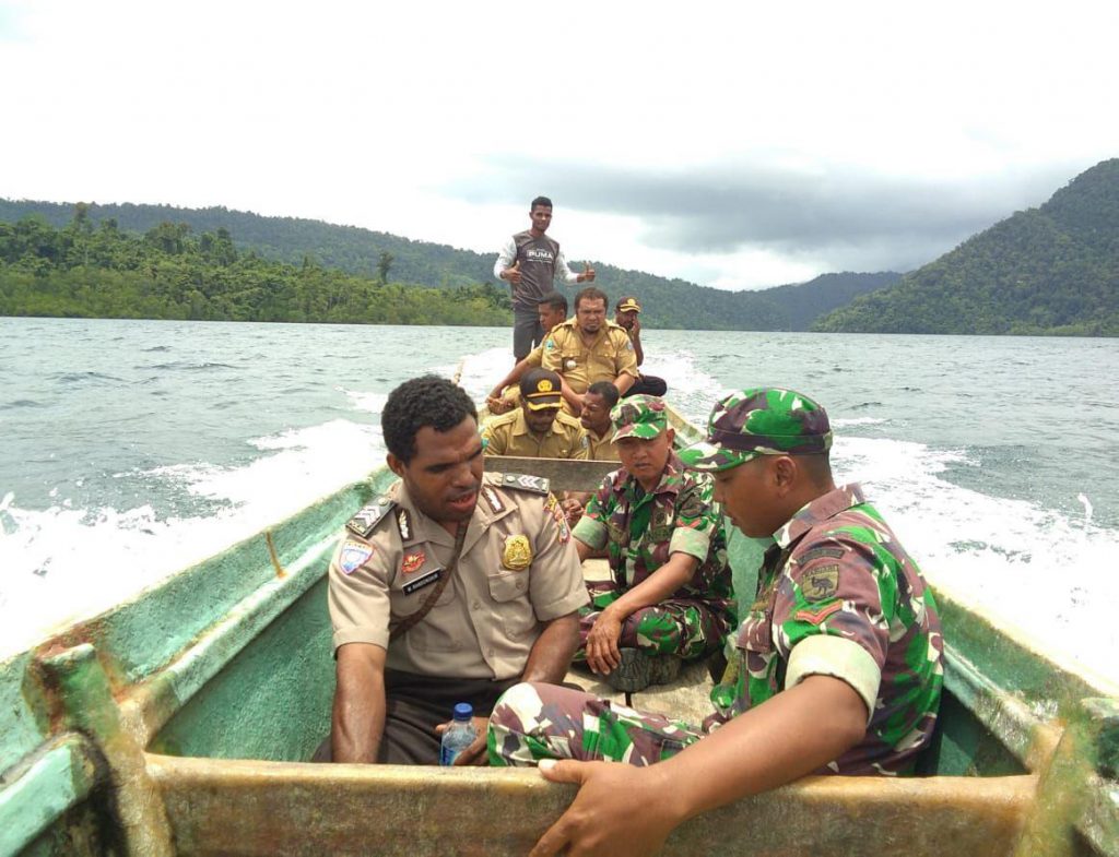 Raja Ampat – Pemantauan diperairan wilayah perairan Teluk Mayalibit yang dilakukan Babinsa Koramil 01/Sonek Kodim 1805/Raja Ampat Kopda Roni Rane dan Kopda M. Fajar beserta Babinkamtibmas dan Aparat Distrik Teluk Mayalibit dan Aparat Kampung Warsambin melaksanakan patroli perairan laut teluk Mayalibit dan melaksanakan pemeriksaan Kapal Bagang yang tidak memiliki ijin serta menangkap ikan di daerah yang dilarang atau Sasi Adat dari masyarakat lokal, Selasa (12/03/2019).
