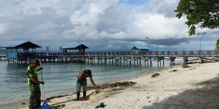 “ Dengan hadirnya Babinsa membuat warga bersemangat dalam menyelesaikan pekerjaan membersihkan pantai di Distrik mios manswar, Kampung Arborek,” ucapnya.
