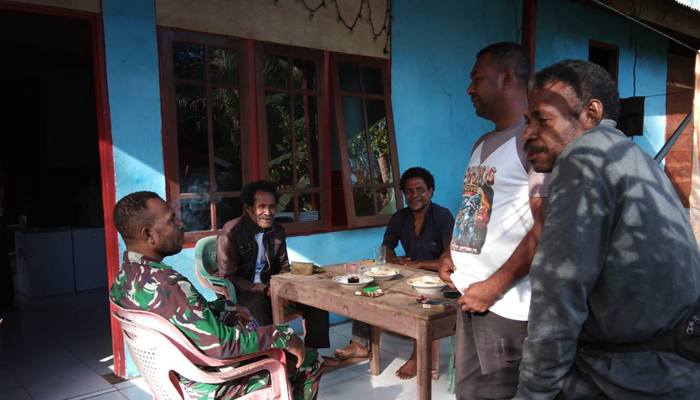 Fakfak – Babinsa Koramil 1803-05/Bomberay Serda Jusman Ali Melaksanakan Komsom dengan Masyarakat kampung Woos dalam menjaga kebersihan lingkungan, Bertempat di Distrik mbahamdandara, Kabupaten Fakfak, Selasa (30/04/2019).