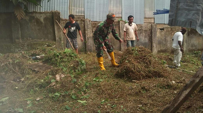 Babinsa Gandeng Pemuda, Laksanakan Karya Bhakti Pembersihan Di Lingkungan