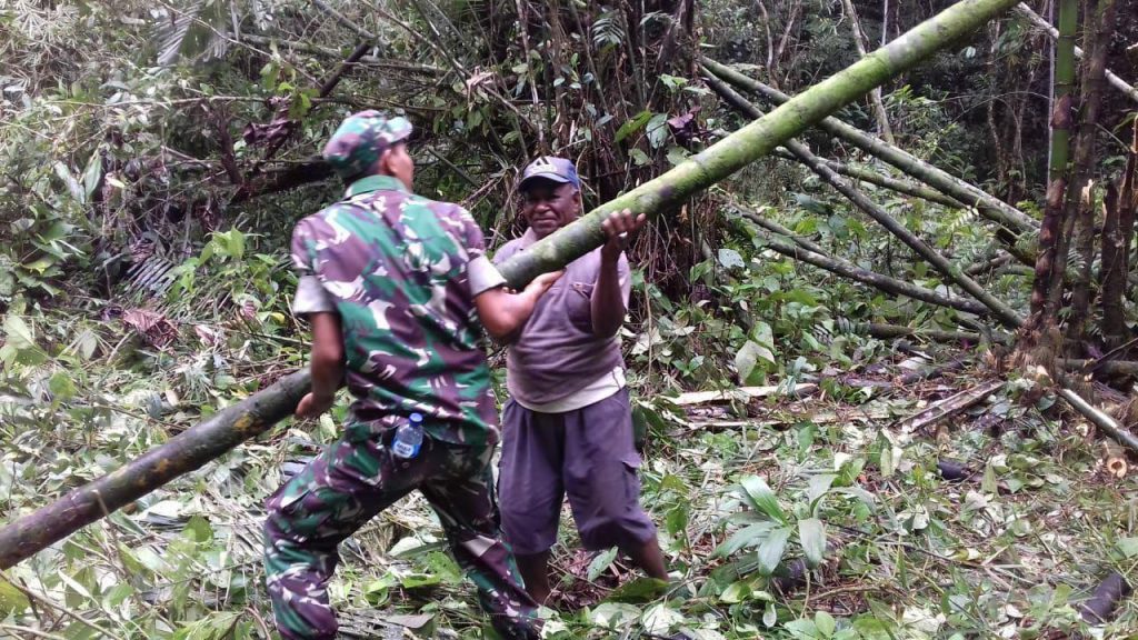 Sorong– Sebagai wujud kemanunggalan TNI terhadap Rakyat, Babinsa Koramil Ayamaru 1802-10/Ayamaru Serda Semli Nomleni dan Serda Soleman membantu warga binaan memotong dan mengangkat bambu dalam rangka pembuatan pagar gereja bertempat di Kampung Karetubun Distrik Ayamaru Utara, Senin (04/03/2019).