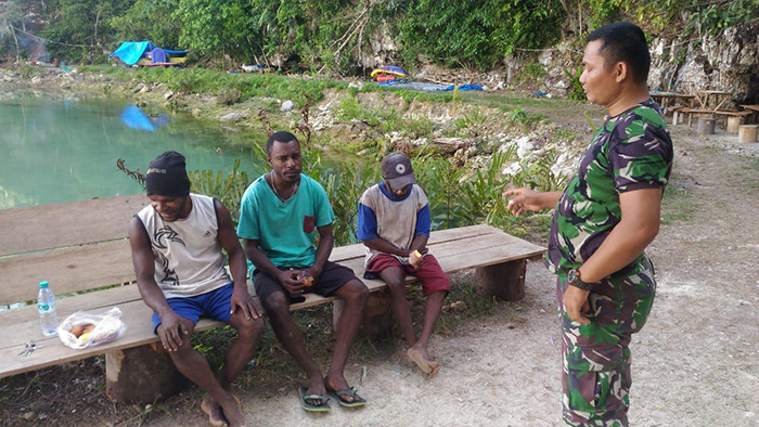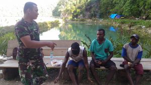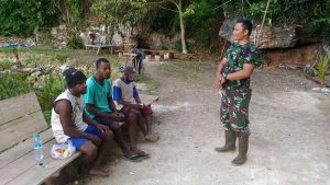 Kaimana – Untuk mempererat tali silaturahmi dan kerjasama yang baik dalam rangka mendukung Tugas Pokok Babinsa serta terwujudnya Kemanunggalan TNI dengan Rakyat, Babinsa Koramil 1713-01/Kaimana secara rutin dan berkesinambungan melaksanakan Komunikasi Sosial (Komsos). Mempedomani hal tersebut kali ini Serda A Situmeang melaksanakan Komsos dengan masyarakat kampung Murano Distrik Kaimana di wilayah Kaimana, Kamis (19/07/2018).