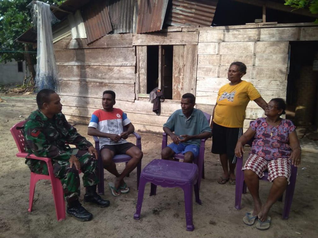 Kaimana – Babinsa Koramil 1804-03/Teluk Arguni Koptu Sugianto Lasanudi melaksanakan Komunikasi Sosial (Komsos) dalam rangka Pembinaan Teritorial (Binter), dengan warga binaannya, bertempat di Kampung Mandiwa Distrik Teluk Arguni, Kamis (07/02/2019).