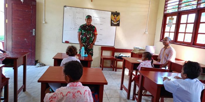 Klamono – Babinsa Koramil 1802-06/Klamono Sertu Sommad Effendi memberikan ilmu pengetauan umum wawasan kebangsaan sebagai insan pelajar yang terus belajar untuk menggapai ilmu setinggi – tingginya kepada siswa SD N YPPK Bonaventura di distrik klamono kabupaten sorong provinsi papua barat daya. Rabu (26/02/2025)
