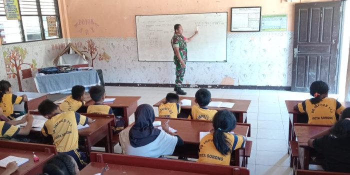 Klamono,- Tumbuhkan Minat Belajar Matematika Babinsa Koramil 1802-02/Klamono Serda Saleh melaksanakan wawasan kebangsaan kepada siswa – siswi SD Negeri 38 Kabupaten Sorong dengan memperkenalan metode gasing pada materi matematika, bertempat matawolot kabupaten sorong. Provinsi Papua Barat Daya. Kamis (16/01/2025).