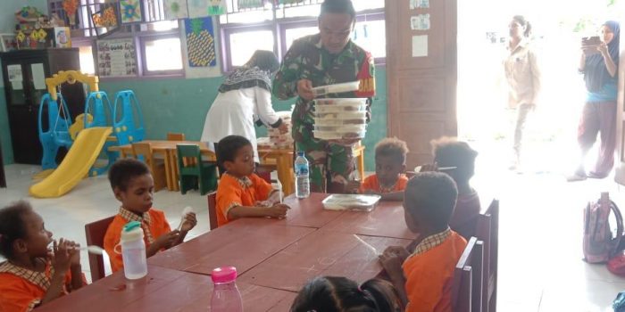 Dalam rangka mendukung pemerintah dalam upaya meningkatkan gizi dan kesehatan masyarakat, Kodim 1804/Kaimana melalui Babinsa jajarannya, aktif melaksanakan pendampingan pendistribusian Makanan Bergizi Gratis.