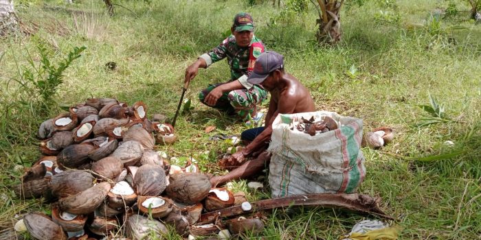 Selain memenuhi kebutuhan sehari-hari kelapa ini akan dijual. Hasilnya sangat membantu menopang pekerekonomian warga,” Terang Babinsa.