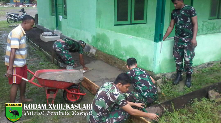 Sorong – Batuud Serma Safarudin Safa Koramil 1704-03/Saonek bersama 5 orang Anggotanya melaksanakan perawatan terhadap sarana tempat ibadah dengan membuat rabat keliling mushola, Minggu (23/04/17).