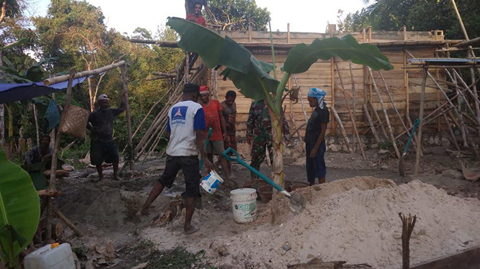 Fakfak – Demi menjaga hubungan yang harmonis antara Babinsa dengan masyarakat, Babinsa 1706-02/Kokas Sertu Samuel Kora secara rutin mendatangi dan berkomunikasi langsung dengan masyarakat binaanya Salah satunya dengan membantu masyarakat binaannya dalam pembuatan penampungan air bersih di Kampung Adora Distrik Teluk Patipi, Kamis (22/11/2018).