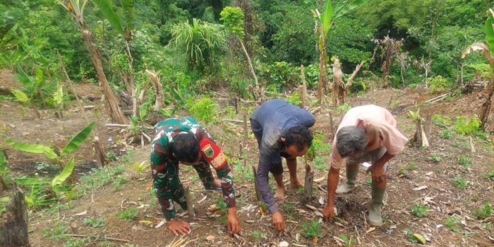 Pendampingan yang dilakukan Babinsa Praka A. Seran kepada warganya tersebut salah satunya adalah pemanfaatan lahan kosong untuk lahan tanaman pangan. Lahan kosong milik bpk. Yosep rencananya akan ditanami beberapa jenis tanaman dengan sistem tumpang sari seperti jagung dan ubi jalar/petatas.