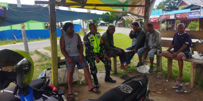 Guna menjaga hubungan yang lebih baik dengan warganya Serda Yoseph Sorlury Babinsa Koramil 1801-01/Manokwari melaksanakan komunikasi sosial (komsos) dengan warga dan para pejasa ojek pangkalan di kampung Buton-Transad