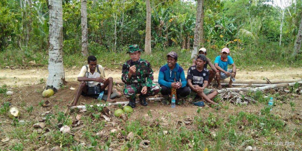 Kaimana – Dalam melaksanakan salah satu tugasnya Babinsa Koramil 1804-04/Buruway Sertu Tandro melakukan kegiatan komunikasi sosial (Komsos) dengan masyarakat kp Adi Jaya Kegiatan komunikasi sosial (komsos) merupakan sarana yang paling mudah untuk memelihara hubungan yang baik dengan masyarakat binaan Mengenai generasi Muda juga membahas jauhi Narkoba, kenakalan Remaja serta dekat dengan masyarakat kp Adijaya khususnya yang menjadi wilayah binaannya, Jumat (28/04/2019).