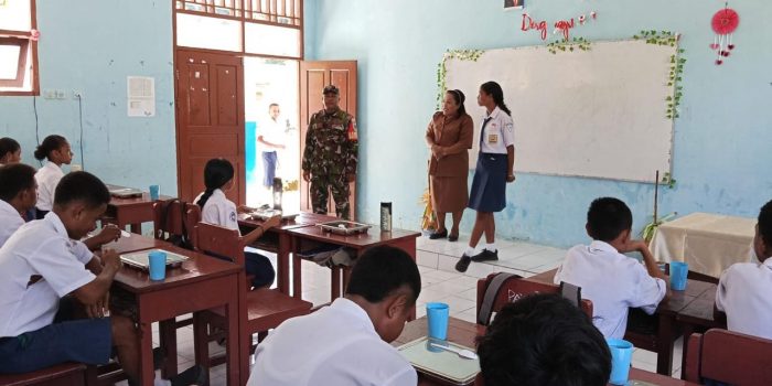 Raja Ampat,PBD-Babinsa Koramil 1805-01/Waisai Serma Zatum melaksanakan monitoring dan pendampingan pendistribusian makan bergizi gratis kepada SMP YPK Alfa Omega Waisai. Bertempat Waisai Kota kab. Raja ampat ,Selasa (18/02/2025).