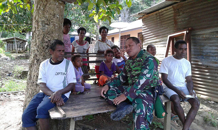 Kaimana – Bertempat di Distrik Tlk. Arguni, Kab. Kaimana Papua Barat Anggota Koramil 1713-03/Tlk. Arguni melaksanakan komsos diwilayah binaan, Kamis (07/06/2018).