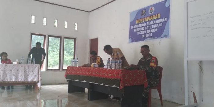Makbon, Minggu (19/01/2025) – Babinsa Koramil 1802-05/Makbon Serka Ponijan menghadiri rapat musyawarah perencanaan pembangunan kampung batu lobang dalam rangka penyusunan rencana kerja pembangunan TA.2025 distrik makbon. Bertempat di kantor distrik makbon kabupaten makbon. Provinsi Papua Barat Daya.