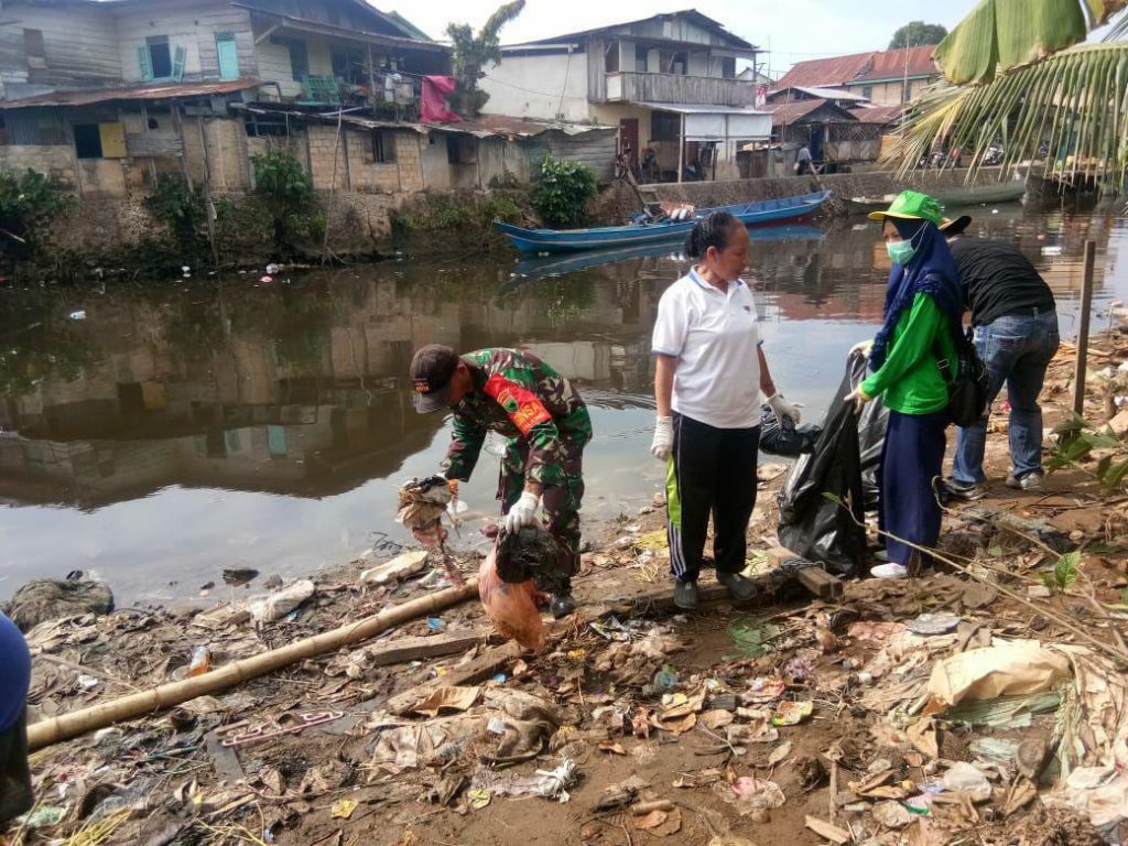 Sorong– Dalam rangka menumbuhkan kembali kepedulian masyarakat dalam menjaga kebersihan lingkungan,  Babinsa Kelurahan Malawei Koramil 1802-01/Sorong Timur Serda Labobar bersama komunitas gerakan peduli kotaku beserta Siswa-siswi SMK Negeri I Kota Sorong menggelar karya bakti pembersihan sampah sepanjang bantaran Kali Remu, Senin (01/04/2019).