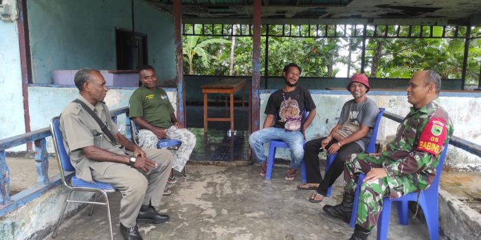Guna menjalin dan menjaga hubungan kemanunggalan TNI dengan Rakyat, Babinsa Koramil 1801-05/Manokwari Utara Serda Sitorus melaksanakan komunikasi sosial (Komsos) bersama warga binaan di Kampung Mibraidiba, Kabupaten Manokwari, Provinsi Papua Barat, Sabtu (07/12/2024).