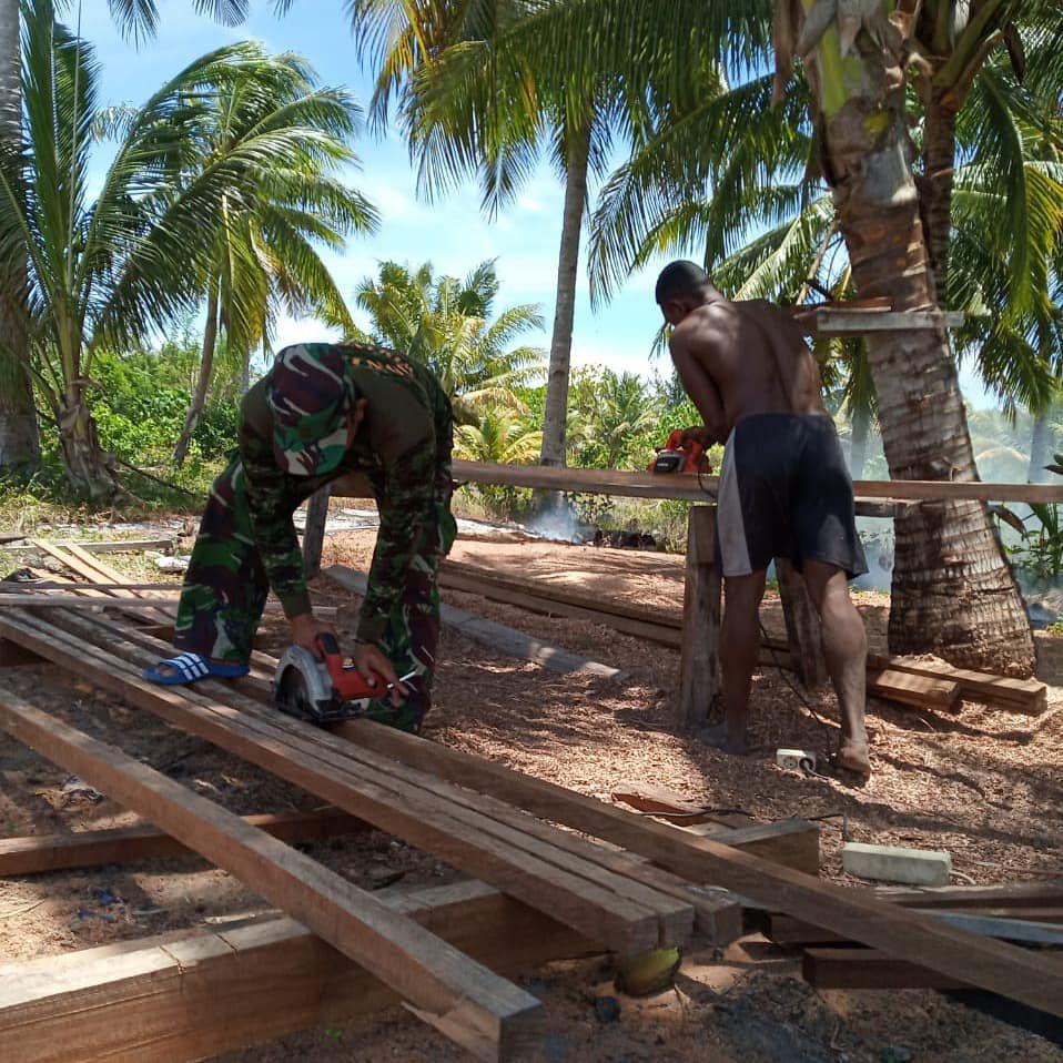 Raja Ampat – Babinsa Koramil 01/Waisai Serda Buce Tomasoa melaksanakan Karya Bhakti membantu Ketua Adat Kampung Saukabu bersama beberapa warga membangun Homestay bertempat di Kampung Saukabu Distrik Waigeo Barat Kepulauan, Kabupaten Raja Ampat, Rabu (03/07/2019)