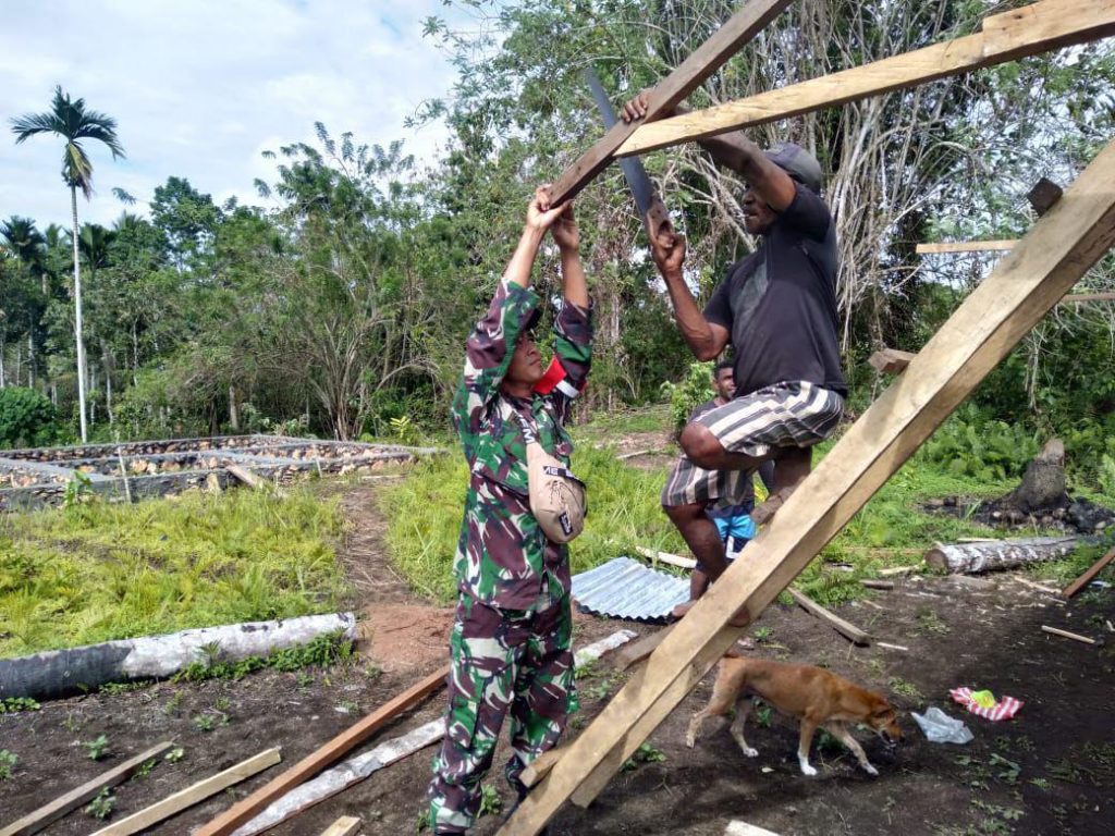 Raja Ampat – Babinsa Koramil 1805-02/Kabare Kodim 1805/Raja Ampat Serka Ali Jainudin Membantu masyarakat membuat Rumah Bertempat di Kampung Wawarnain, Distrik Wawarbomi, Kab. Raja Ampat, Prov. Papua Barat, Senin (23/07/2019)