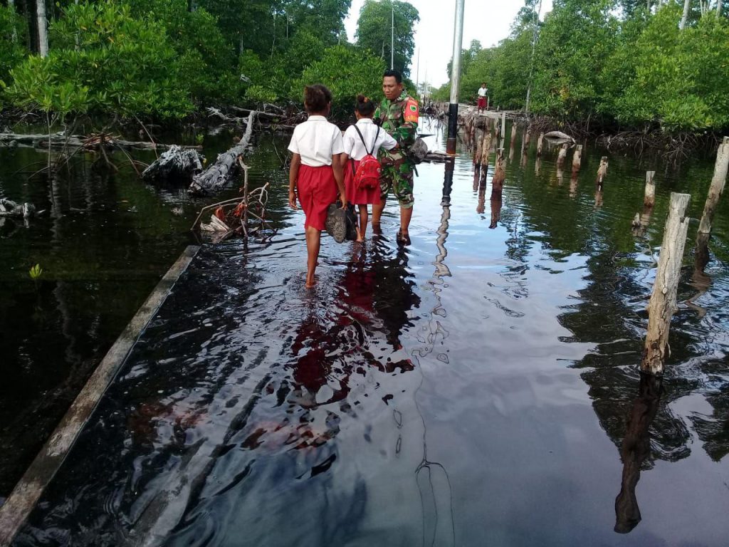 Hal tersebut juga dibenarkan oleh Danramil 1805-04/Misool Lettu Inf Arman dimana saat ini Babinsa sedang melakukan kegiatan penyeberangan dengan mendampingi anak sekolah menyeberangi Rawa menuju sekolah.