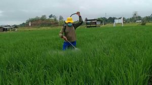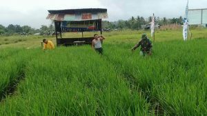 Sorong – Bertempat dilahan Ketahanan Pangan Kodim 1704/Sorong di Jalan Bandara Kelurahan Klamalu Distrik Mariat Kabupaten Sorong Babinsa Koramil 1704-01/Sorong Timur. Dipimpin Peltu Tugimin melaksanakan Penyemprotan hama padi dan Pembersihan rumput serta menerima penyuluhan dari Bapak Iriyanto Dinas Pertanian Kabupaten Sorong, Selasa (31/07/18).