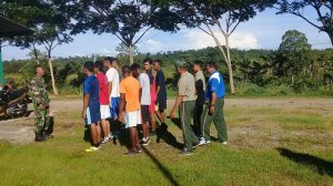 Diakhir pembinaan fisik untuk menghindari rasa jenuh dari para calon Prajurit TNI AD, Serka Suparmin mengajak bermain bola Volly bersama. Terlihat pada saat pelaksanaan para calon Prajurit TNI AD sangat antusias dan tertawa bersama seakan akan apa yang dilatih oleh anggota Koramil 1704-03/Salawati tidak merasakan kelelahan. Dan ini membuktikan bahwa segala sesuatu yang dilakukan dengan semangat dan ikhlas dapat menghasilkan yang terbaik, tutup Serka Suparmin.