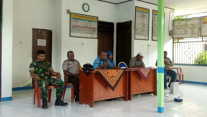 Sorong – Dalam rangka rencana pemilihan Sekretaris Desa Kampung Arar, Babinsa Kampung Arar Koramil 1704-03/Salawati Sertu Muhtadi bersama Bhabinkamtibmas Bripka Ilham Bugis, Tokoh Agama Bapak Sahaka, Tokoh Adat Bapak Barnabas Kokmala beserta seluruh masyarakat Kampung Arar Distrik Mayamuk Kabupaten Sorong melaksanakan pembahasan rencana pemilihan Sekdes Kampung Arar bertempat di Kantor Distrik Mayamuk, Sabtu (13/10/2018).