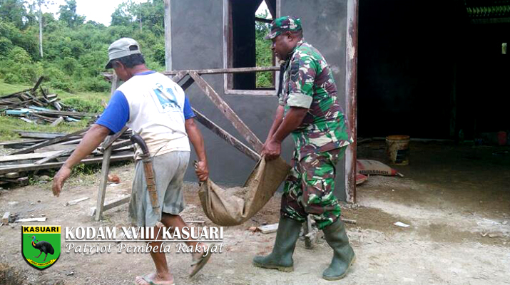 Sorong – Babinsa Koramil 1704-06/Salawati melaksanakan karya bakti bersama masyarakat saling bahu-membahu dalam pembangunan mushola di Kampung Malaus Distrik Salawati Kab Sorong, Sabtu (22/04/17).