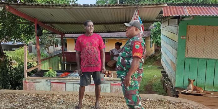 Pendim1809maybrat- Babinsa Serka Davit Burdam monitoring wilayah dengan melaksanakan komsos bersama bapak Sefnat Salosa, di wilayah Distrik Ayamaru. Kab. Maybrat, Papua Barat Daya. Rabu,(05/02/2025).