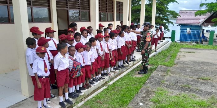 Seget. – Sebagai insan pelajar yang terus belajar untuk menggapai ilmu setinggi-tingginya, sudah seharusnya siswa/i SD N Moibi mengetahui tentang wawasan kebangsaan sejak dini. Babinsa Koramil 1802-04/Seget Serka Alwi melaksanakan wawasan kebangsaan menyanyikan lagu Indonesia raya kepada siswa SD N Moibi bertempat di distrik seget kabupaten sorong. Provinsi Papua Barat Daya. Rabu (08/01/2025).