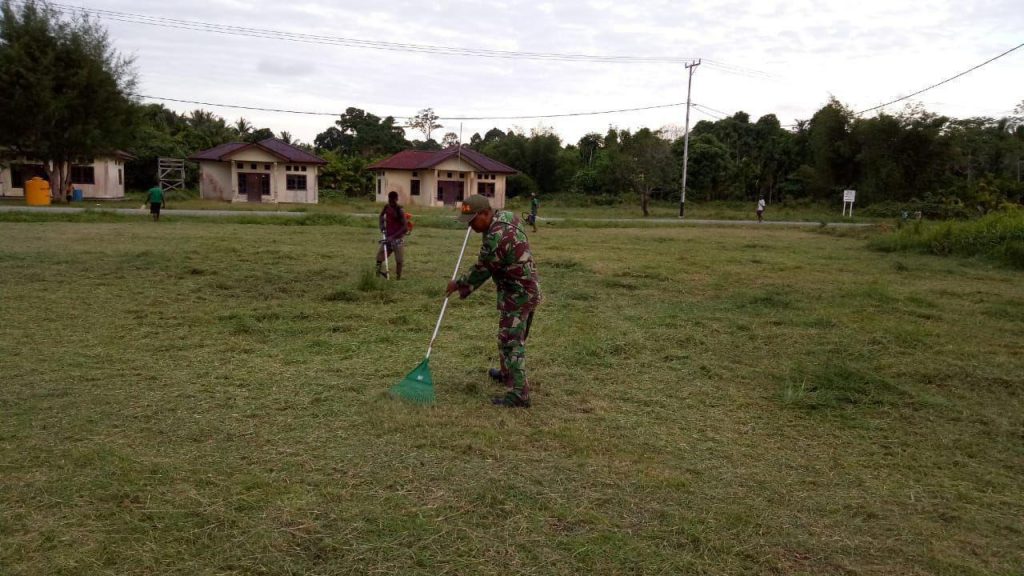 Sorong-  Gotong royong merupakan kebudayaan Bangsa Indonesia yang turun temurun wajib dipelihara agar tidak hilang ditelan zaman. Oleh karena itu agar tradisi gotong royong tetap lestari, Babinsa Kampung Sakapul Distrik Salteng Koramil 1802-04/Seget Sertu Masud bersama masyarakat setempat bahu membahu membersihkan lapangan bola, Selasa (28/05/2019).