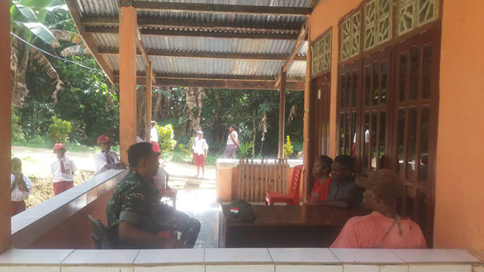 Sorong – Bintara Pembina Desa Koramil 1704-08/Teminabuan Kodim 1704/Sorong Serda Kiswanto melaksanakan Komunikasi Sosial (Komsos) dengan Kepala kampung Sawiat Distrik Sawiat kab. Sorong Selatan, Selasa (16/10/2015).