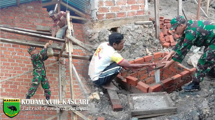Sorong – Anggota Koramil 1704-14/Beraur membantu masyarakat membuat jamban dan pembangunan rumah tokoh masyarakat dikampung Selol Distrik Hobard Kab Sorong, Sabtu (22/04/2017).