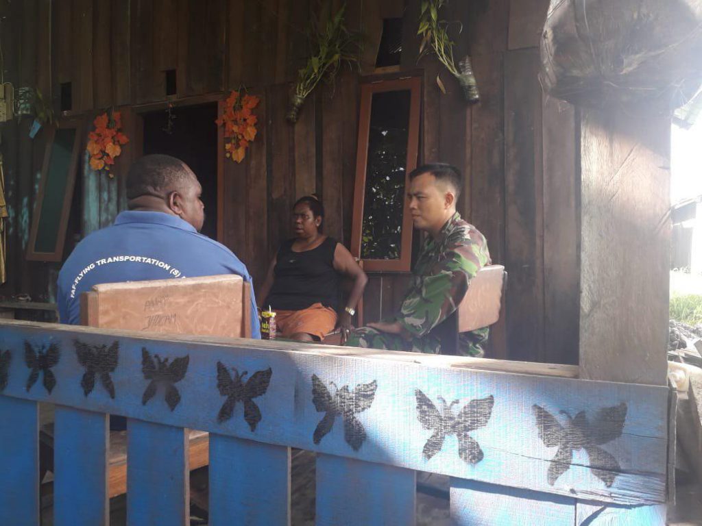 Sorong – Babinsa Koramil 1802-01/Sorong Timur Serda Alexander melaksanakan Komunikasi Sosial (Komsos) dalam rangka Pembinaan Teritorial (Binter), dengan warga binaannya yang bertempat di rumah ketua Rt 01 kelurahan Klasugle, distrik Sorong Kabupaten, Kabupaten Sorong, Jum’at (04/01/19).